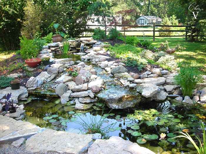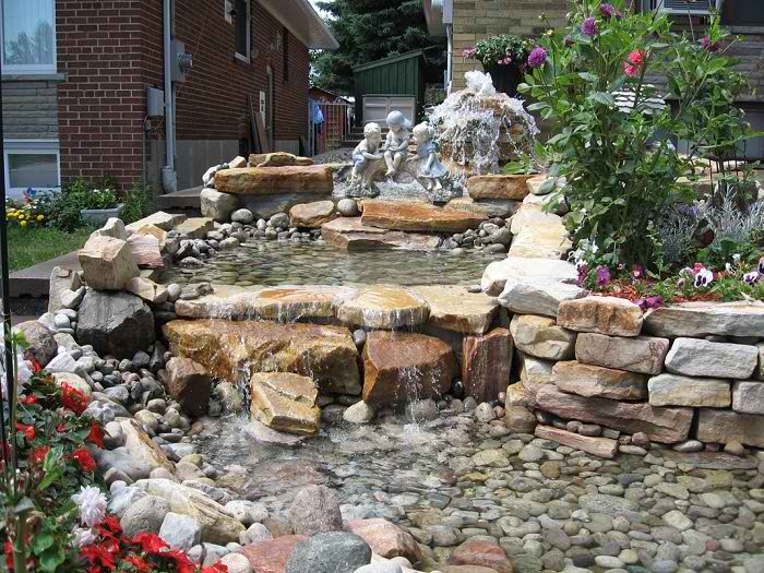 Khi lạc vào không gian tiểu cảnh sân vườn thì hai thiết kế làm cho ta chú ý nhất đó là hòn non bộ và suối, thác nước.